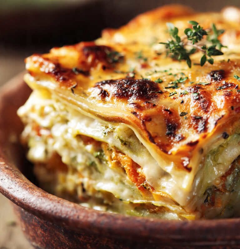 Diese Lasagne spielt nicht nach den klassischen Regeln – und genau deshalb schmeckt sie so besonders.Herzhaft gewürzte Sojaschnetzel treffen auf eine warme Tomaten-Zimt-Note, Karotten bringen Süße, Datteln Tiefe, Chili sorgt für Schärfe, und darüber legt sich eine milde Wirsing-Sahne-Schicht. Beim Backen verschmelzen die Lagen, die Sauce wird samtig, der Käse goldbraun, der Duft im Raum…
