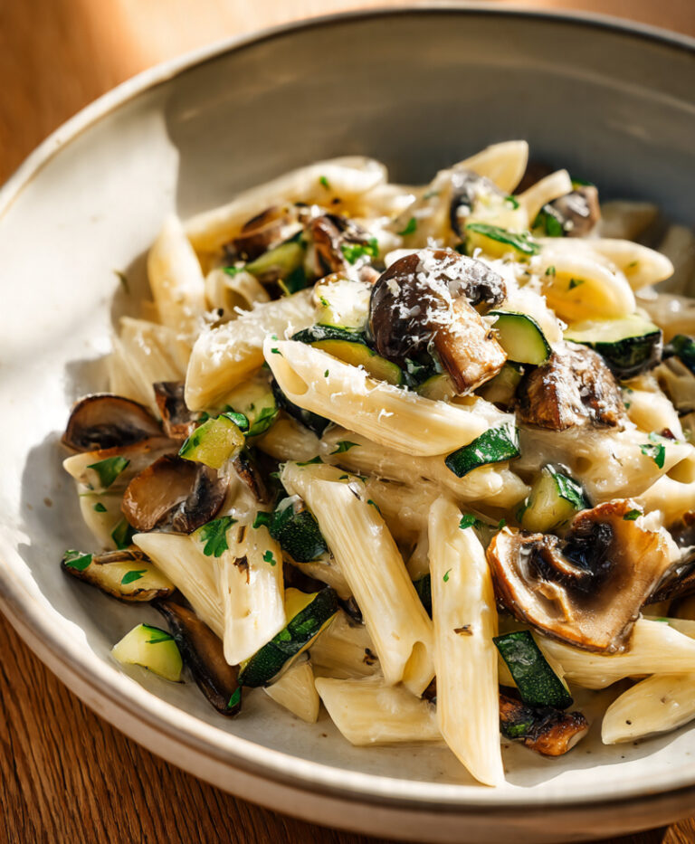 Nudeln mit Champignon-Gemüse in leichter Mehlsauce – schnell, mild & perfekt für eine Portion