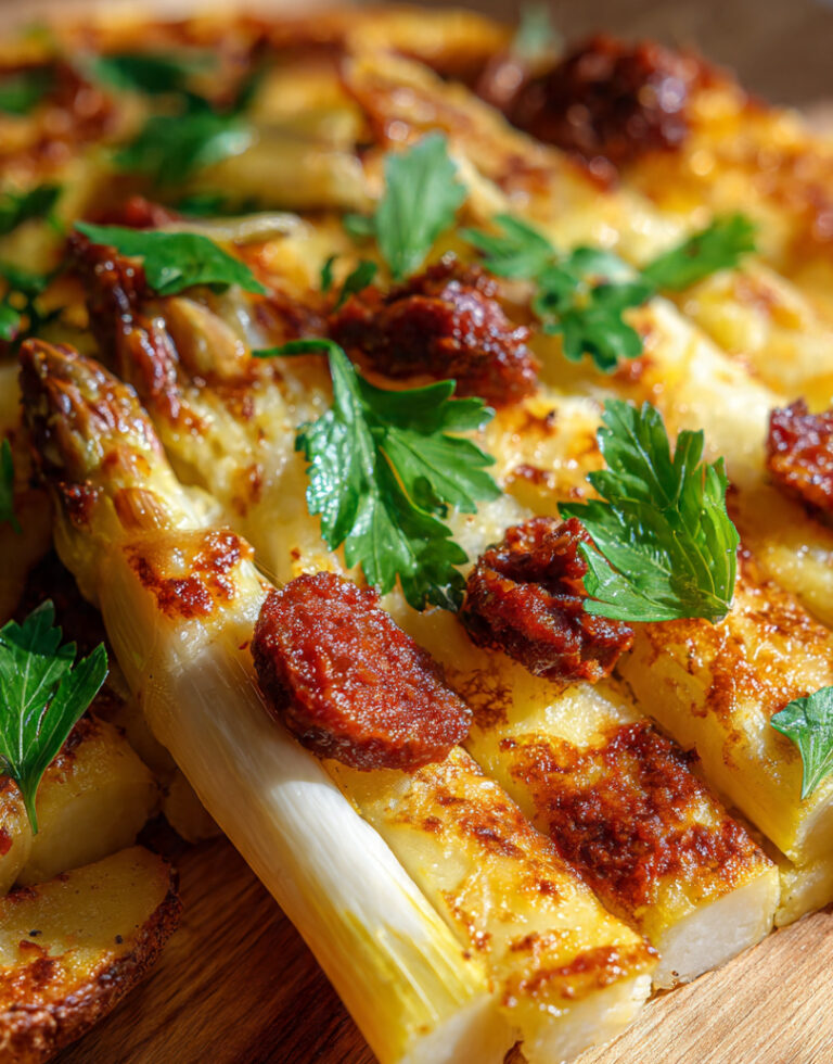 Spargel-Kartoffel-Tortilla mit Chorizo