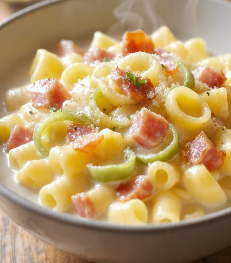 Cremige Makkaroni mit Lauch, Schinken & heller Trauben-Zitronen-Sauce ✨