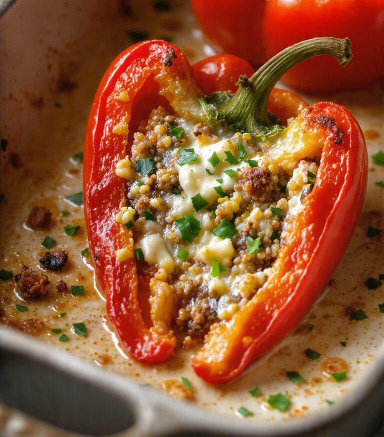 Dieses Ofengericht vereint zartes Hackfleisch, cremigen Frischkäse und eine großzügige Portion frischer Kräuter in süßen Spitzpaprika – ein Teller voller Wärme, Würze und Sättigung. Beim Backen verbindet sich die Füllung zu einer saftigen Masse, bleibt weich und aromatisch, während die Paprika leicht röstet und ihre natürliche Süße entfaltet. Die cremige Komponente des Frischkäses macht die…