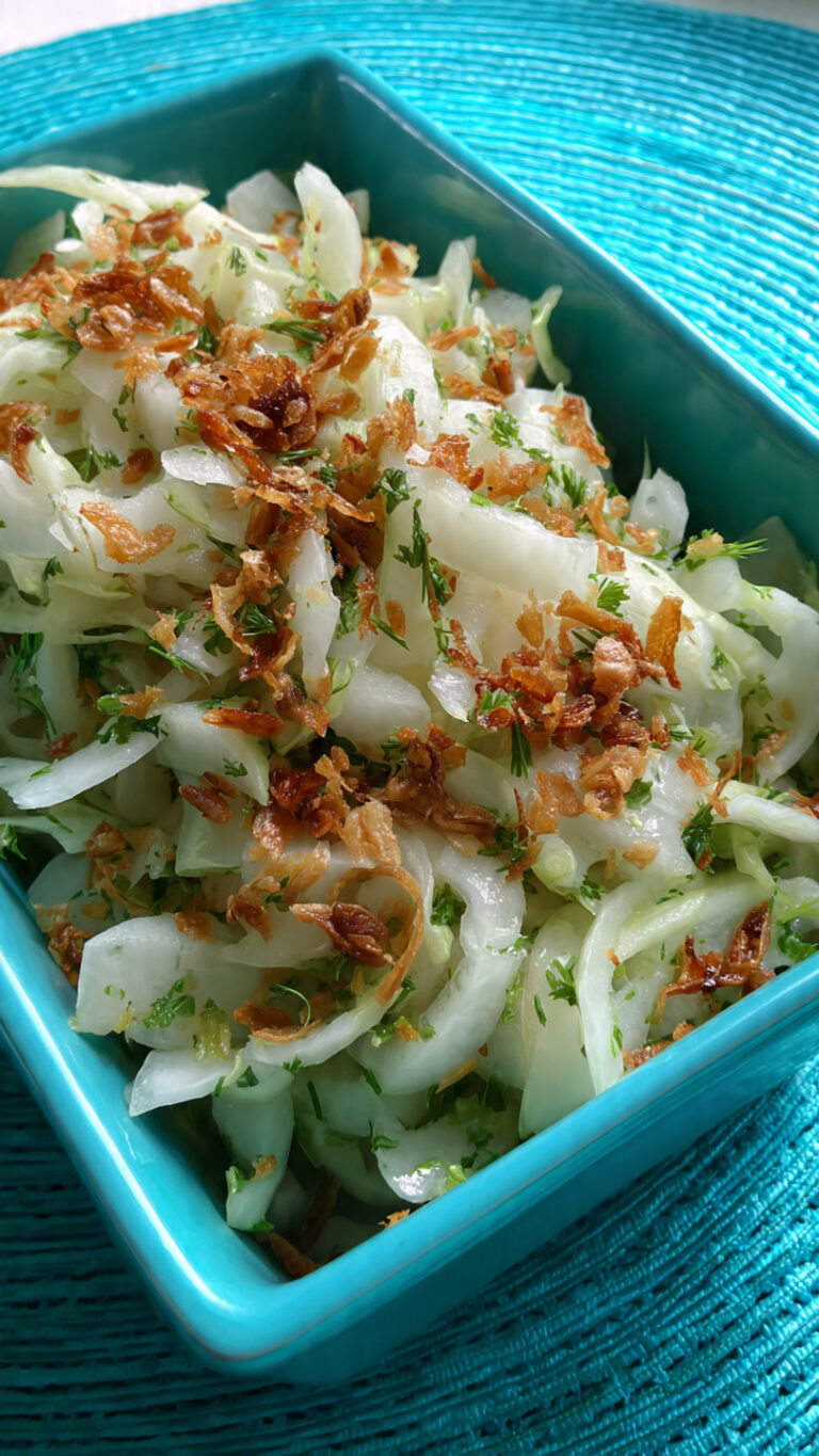 🧾 Zutaten (für 2–3 Portionen): 2 mittelgroße Kohlrabi 2–3 EL Pflanzenöl oder Olivenöl 1–2 EL Zitronensaft oder milden Essig Salz & Pfeffer 1 TL Zucker oder Honig (optional) Frische Kräuter: Petersilie, Schnittlauch oder Basilikum 1–2 EL knusprige Röstzwiebeln, Speckwürfel oder Croutons (wie auf dem Bild) 👩🍳 Zubereitung: 1. Kohlrabi vorbereiten Kohlrabi schälen und in dünne…