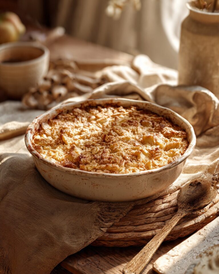 Omas Apfel-Hafer-Auflauf mit Vanilleduft Bewertung: 4,8 von 5 Sternen Dieser Apfel-Hafer-Auflauf ist ein klassisches Ofengericht, das sofort an gemütliche Nachmittage in der Küche der Großmutter erinnert. Das Bild zeigt einen goldbraun gebackenen Auflauf in einer rustikalen Keramikform, mit sichtbar zarten Apfelstücken und einer leicht knusprigen Oberfläche. Die Textur wirkt saftig und weich im Inneren, während…