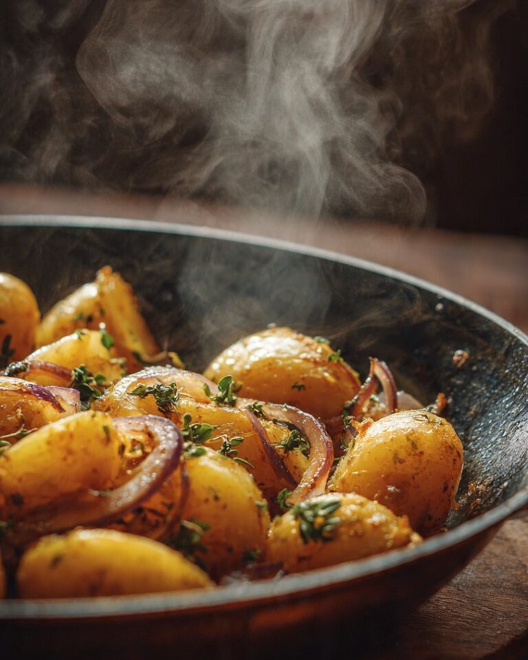 Buttrige Kartoffelpfanne mit Zwiebeln & Majoran Bewertung: 4,9 von 5 Sternen Diese buttrige Kartoffelpfanne ist ein echtes Beispiel für ehrliche, bodenständige Küche. Das Bild zeigt goldgelb gebratene Kartoffeln, die in einer schweren Pfanne sanft bräunen, begleitet von weich geschmorten Zwiebeln, frischem Majoran und aufsteigendem Dampf. Genau diese Optik verrät bereits, was dieses Gericht ausmacht: Wärme,…