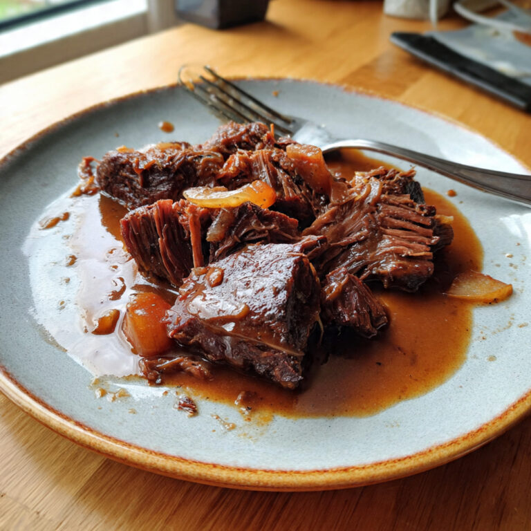 4,9 von 5 Sternen Muttis deutscher Schmorbraten aus dem Slow Cooker – Zart, aromatisch und traditionell Einleitung Das Bild zeigt einen klassischen deutschen Schmorbraten, serviert auf einem schlichten Teller mit reichlich dunkler, glänzender Sauce. Das Fleisch ist in grobe Stücke zerteilt und wirkt besonders saftig und faserig – ein deutliches Zeichen für eine lange, schonende…