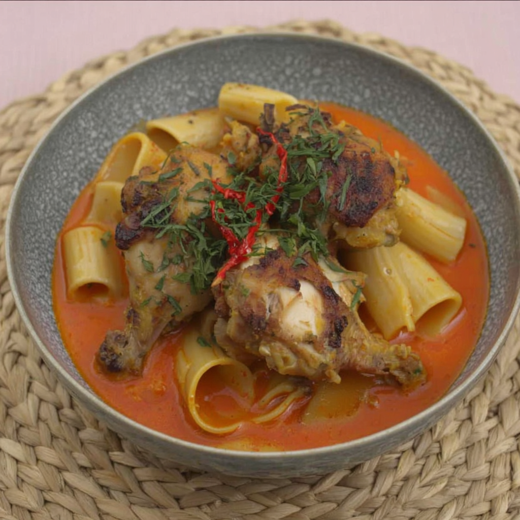 Paprikahendl ist ein traditionelles Gericht aus Österreich und Ungarn, das durch seine cremige Paprikasauce besticht. In Kombination mit zarten Nudeln wird es zu einem wahren Wohlfühlessen. Saftige Hähnchenteile, langsam geschmort in Paprika, Zwiebeln und Sauerrahm, bringen ein vollmundiges Aroma auf den Teller – ein Gericht, das nach Heimat und Gemütlichkeit schmeckt.