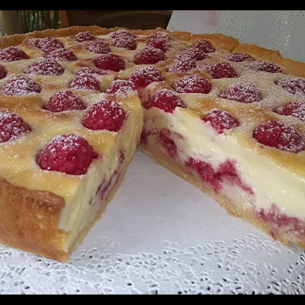 ✅ SEO-stark: Keywords wie Himbeer-Vanille-Pie, Vanillecreme Tarte, Fruchtkuchen mit Himbeeren, amerikanischer Pie sind integriert.