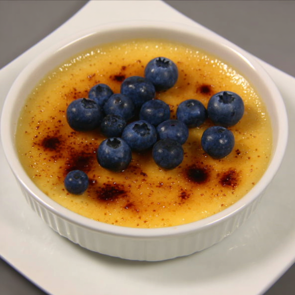 Diese Crème brûlée mit Früchten vereint zwei Welten: die samtige, vanillige Creme der französischen Küche und die natürliche Süße frischer Früchte. Unter der goldenen Karamellkruste verbirgt sich eine zartschmelzende Creme, die mit jeder Gabel ein kleines Stück Himmel offenbart – ein Dessert, das Eleganz und Leichtigkeit perfekt vereint.