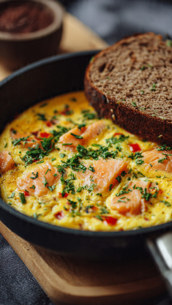 Ein Paprika-Frühlingszwiebel-Lachs-Omelett ist der ideale Mix aus leichter Küche, kräftigem Aroma und hochwertigem Eiweiß.