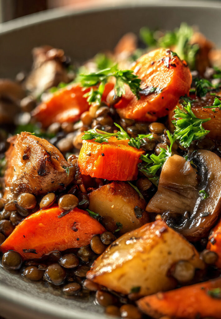 Alles 10–12 Minuten sanft köcheln lassen, bis die Linsen weich sind.