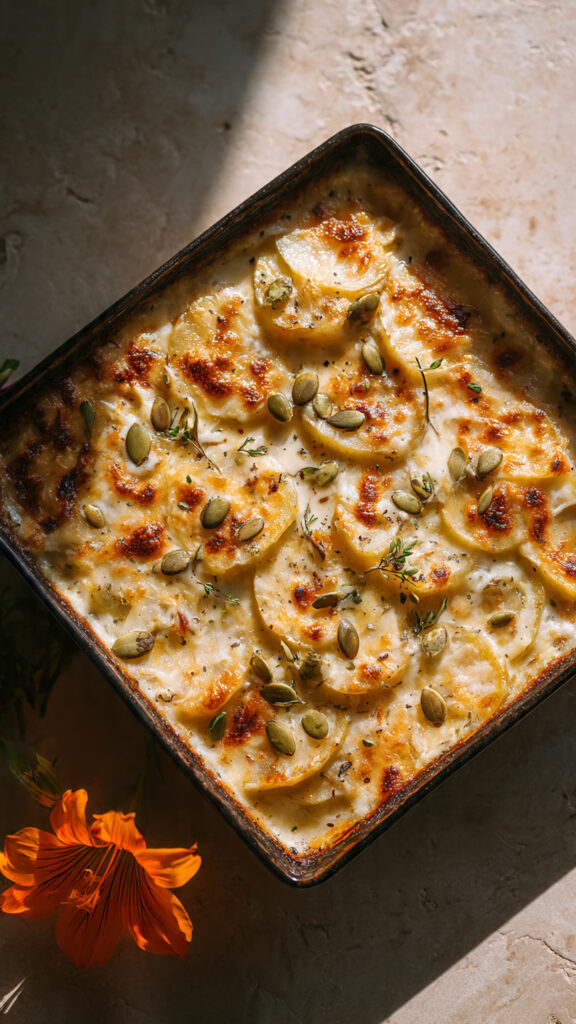 Vor dem Servieren 5 Minuten ruhen lassen — so bleibt das Gratin stabil und setzt sich.