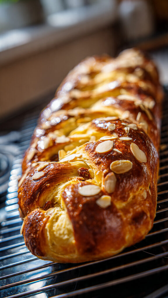 Den Zopf auf ein Backblech legen, abdecken und weitere 20–30 Minuten gehen lassen.