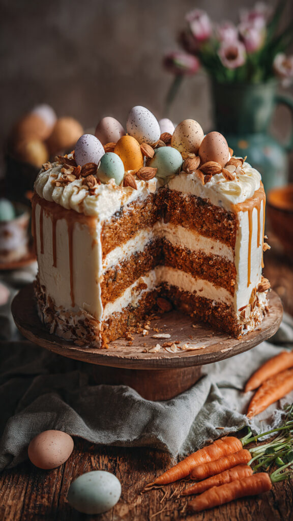 Dank der geriebenen Möhren bleibt der Kuchen herrlich feucht, während Nüsse, Zimt und eine zarte Frischkäsecreme für ein harmonisches Geschmackserlebnis sorgen.