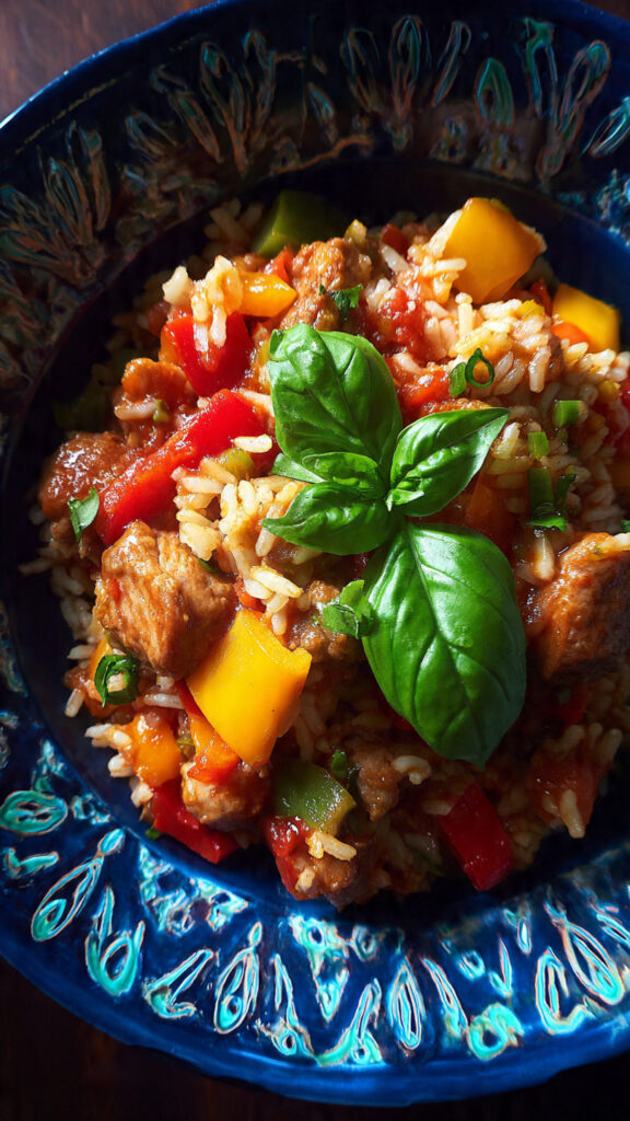 Serbisches Reisfleisch ist ein echter Klassiker der Balkanküche: zartes Fleisch, buntes Gemüse und würziger Paprika-Reis verschmelzen zu einem herzhaften Eintopfgericht, das angenehm sättigt und voller Aromen steckt.