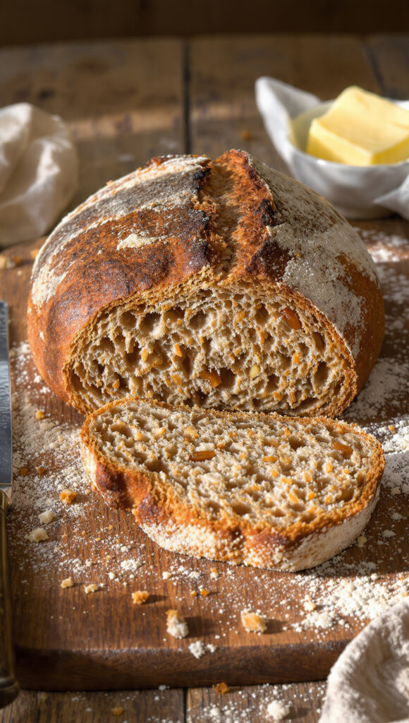 Knusprige Kruste, saftige Krume und ein intensives Aroma von Fenchel, Zwiebeln und malzigem Brot – dieses Sauerteigbrot ist ein echtes Genusslaib. Durch Malzbier/alkoholfreies Weizenbier wird der Teig besonders fluffig, leicht süßlich und angenehm dunkel. Röstzwiebeln geben Tiefe, Sauerteig sorgt für Geschmackskomplexität und Fenchel bringt eine warme, würzige Note, die perfekt zu herzhaftem Belag passt.