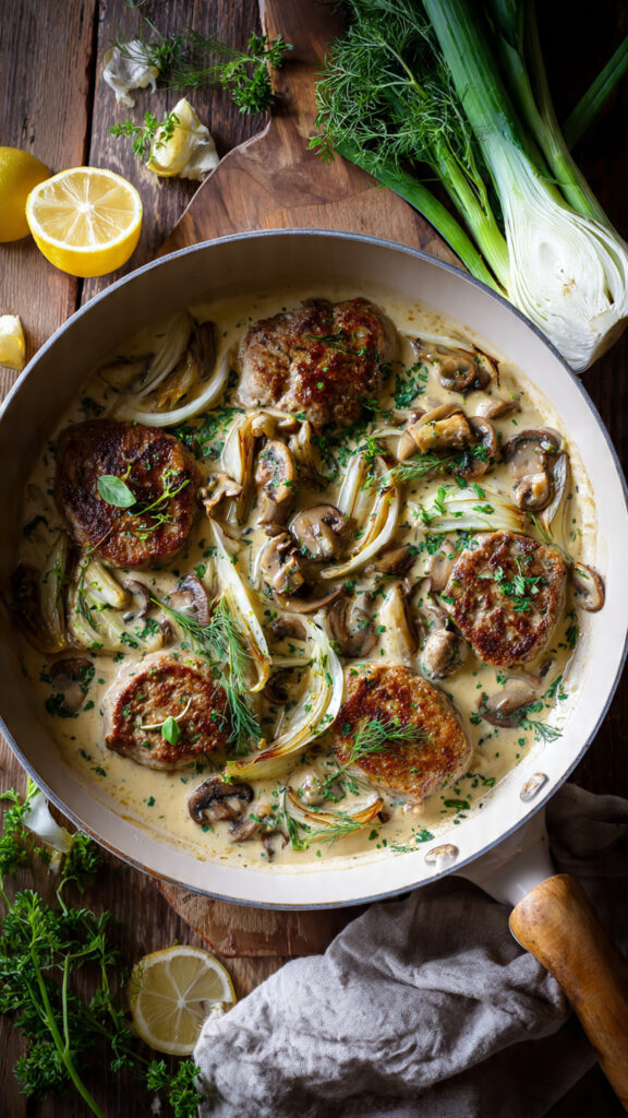Die Zubereitung ist unkompliziert, lässt sich auch im Alltag schnell umsetzen und liefert ein Gericht, das erstaunlich viel Eleganz auf den Teller bringt. Gerade Fenchel wird in vielen Küchen zu selten verwendet, obwohl er beim Braten ein mildes, fast mediterranes Aroma entwickelt, das ideal zu Fleisch und Sahne passt. Zusammen mit Petersilie und einem Schuss Zitronensaft entsteht eine ausgewogene Komposition, die frisch und cremig zugleich schmeckt.