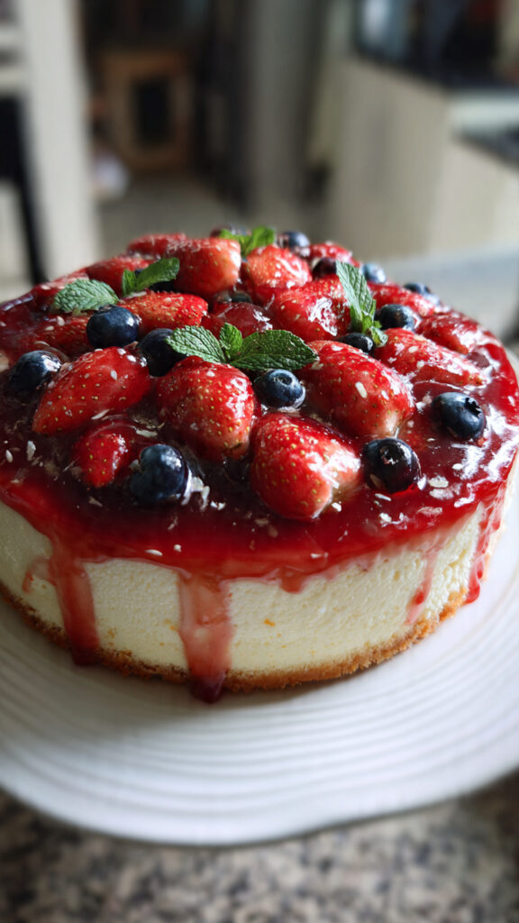 • 🍓 Fruchtige Beeren-Waldmeister-Torte mit Vanille-Honig-Grießpudding