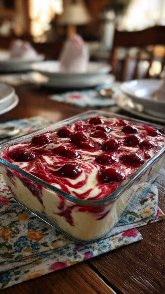 Mit etwas Kirschsaft marmorieren oder einige Kirschen zur Deko obenauf geben.