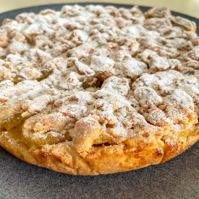 Ein schneller, butterzarter Klassiker mit süßem Apfelmus und knusprigen Streuseln.
