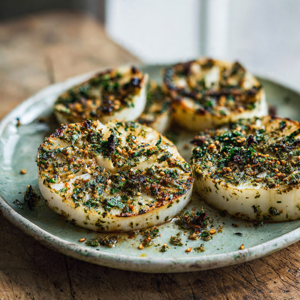 Die ofengebackenen Kohlrabi-Steaks mit Kräuterkruste sind ein elegantes, modernes Gemüsegericht, das durch Einfachheit, Struktur und Geschmack überzeugt und sich ideal für eine professionelle Rezeptseite eignet.