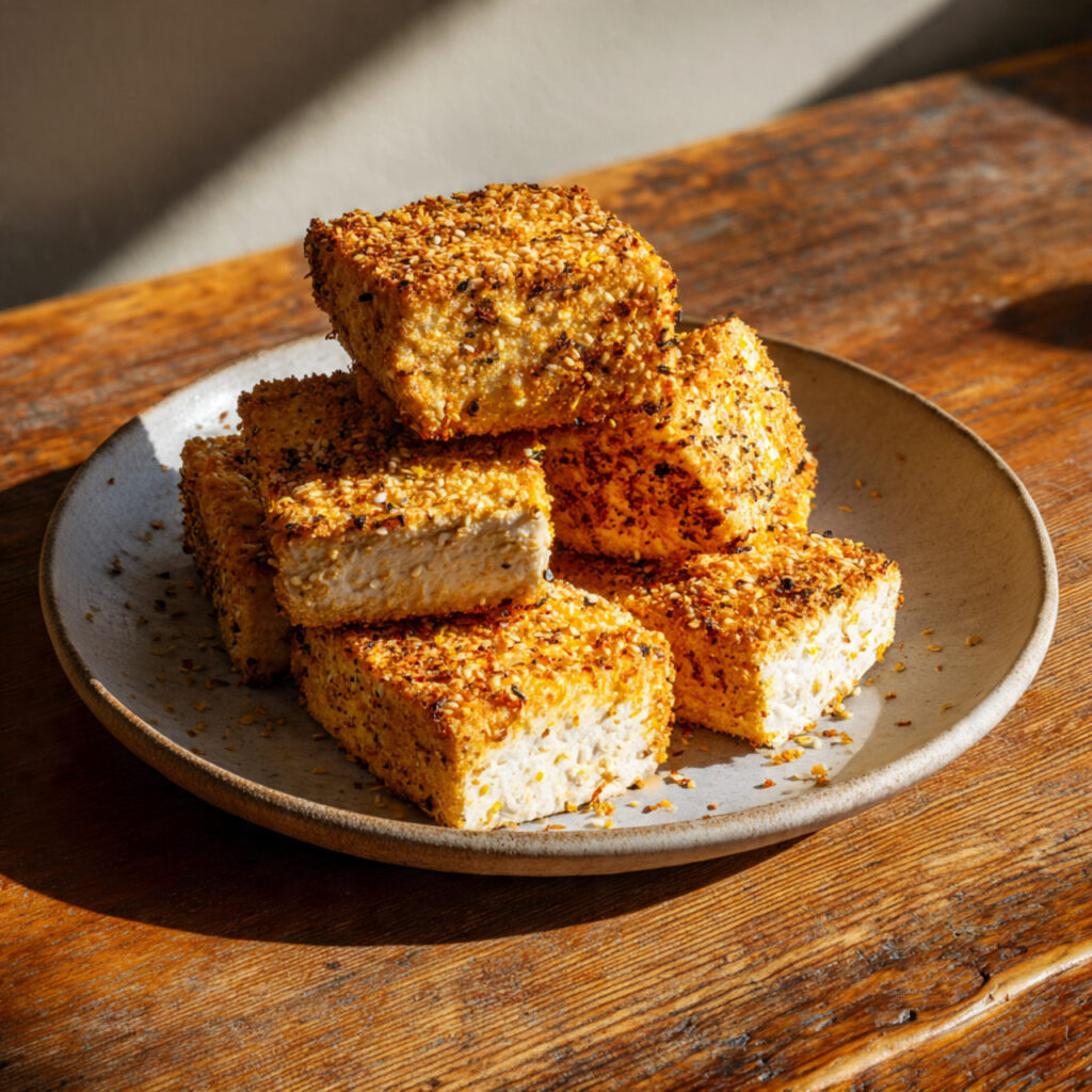 Dieser knusprige Ofen-Tofu mit Zitronen-Sesam-Kruste ist ein hochwertiges, modernes Gericht mit klarer Optik und ausgewogenem Geschmack. Durch seine professionelle Zubereitung und ansprechende Struktur eignet er sich ideal für die Veröffentlichung auf einer Rezept-Website.