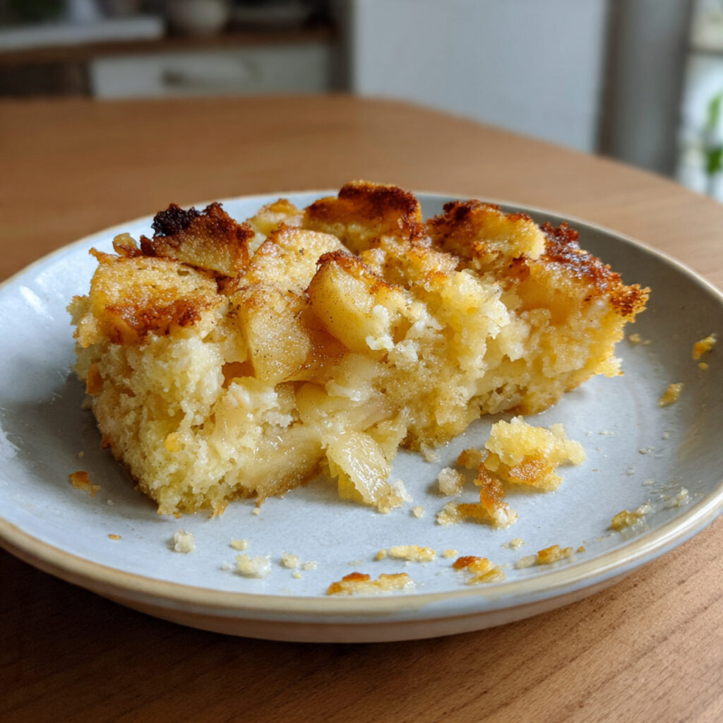 Der Apfel-Grieß-Auflauf aus dem Ofen ist ein klassisches Wohlfühlgericht, das Einfachheit und Geschmack perfekt verbindet. Das Bild zeigt ihn so, wie er sein soll: rustikal, saftig und ehrlich. Ein ideales Rezept für eine Website, die traditionelle Küche bewahren und authentisch präsentieren möchte.