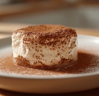 Kurz vor dem Servieren die Oberfläche gleichmäßig mit Backkakao bestäuben. Die feine Kakaoschicht sorgt für einen eleganten Kontrast zur hellen Creme und rundet das Dessert geschmacklich ab.