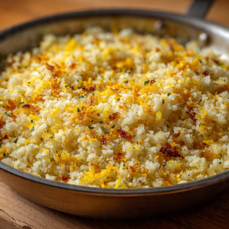 Goldene Blumenkohl-Reis-Pfanne mit Zitronenkruste