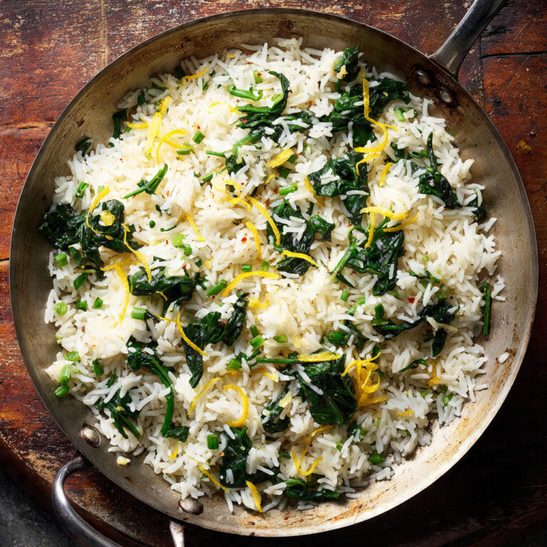 Zitronige Reis-Spinat-Pfanne nach Landhausart