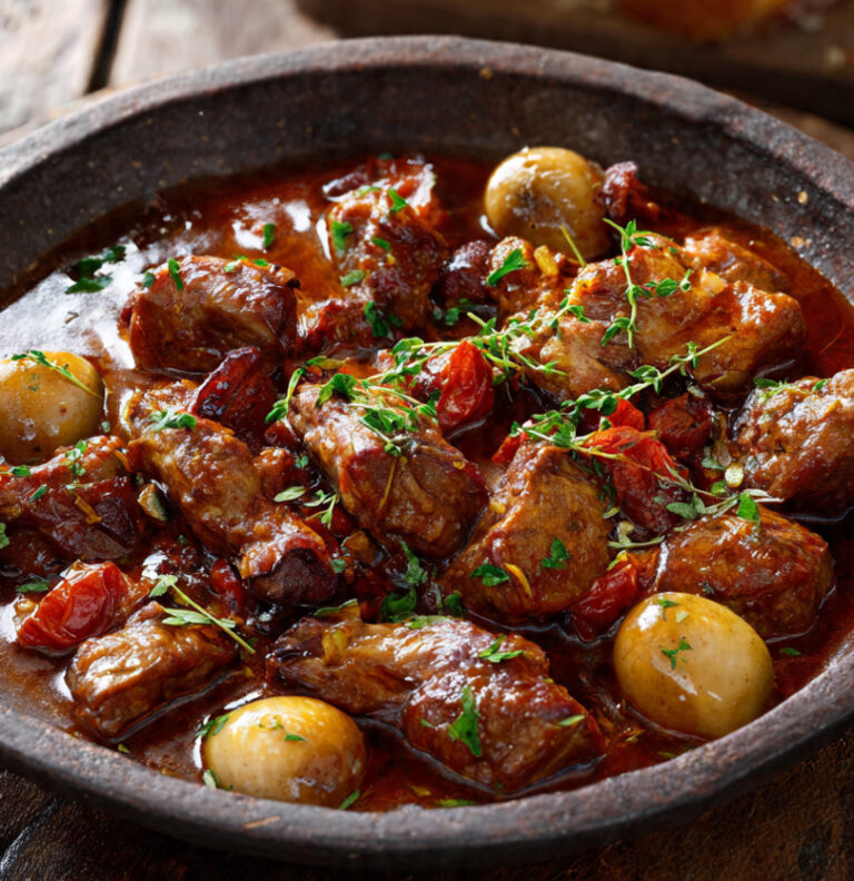 Mild-scharfes Kartoffelgericht mit mariniertem Schweineschnitzel und aromatischer Zitronengras-Tomatensauce