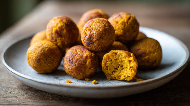Goldene Linsen-Kürbis-Bällchen ohne Frittieren