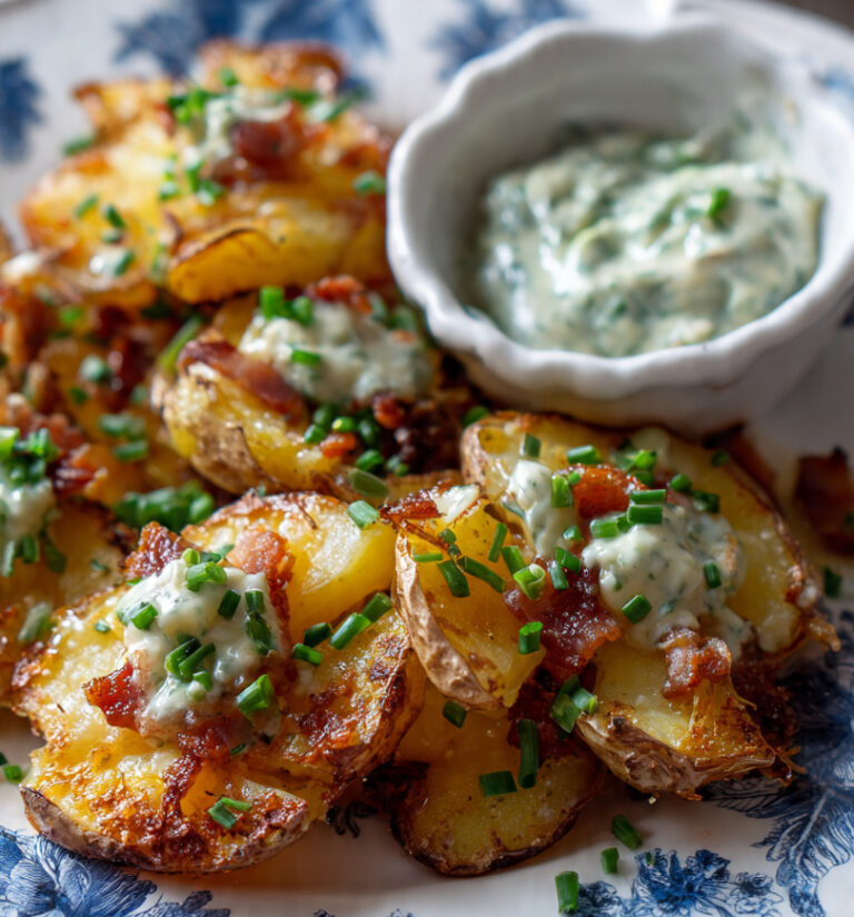 Quetschkartoffeln mit frischem Dip – Knusprig, Saftig & Einfach aus dem Ofen