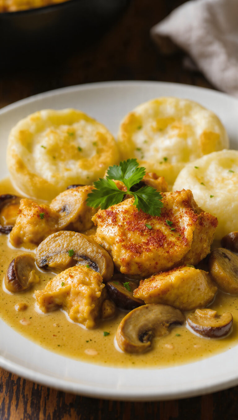 Baharathuhn mit Champignons – Aromatisch Würzig & Cremig aus der Pfanne